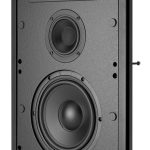 The key to the WS350 In-Wall Loudspeaker’s performance lies in the unique deep drawn aluminum back enclosure that houses the driver array. This design minimizes sound transmission into adjoining rooms, keeping the sound from escaping through the walls of the listening room and helping to deliver encompassing surround sound. The WS350 features one 8” woofer, one 4” midrange and five 1” tweeters. The black frame’s flanges can be painted to match your wall color. A white aluminum grille magnetically attaches to the frame and covers the entire speaker and frame; the grille can also be painted to match your wall color.